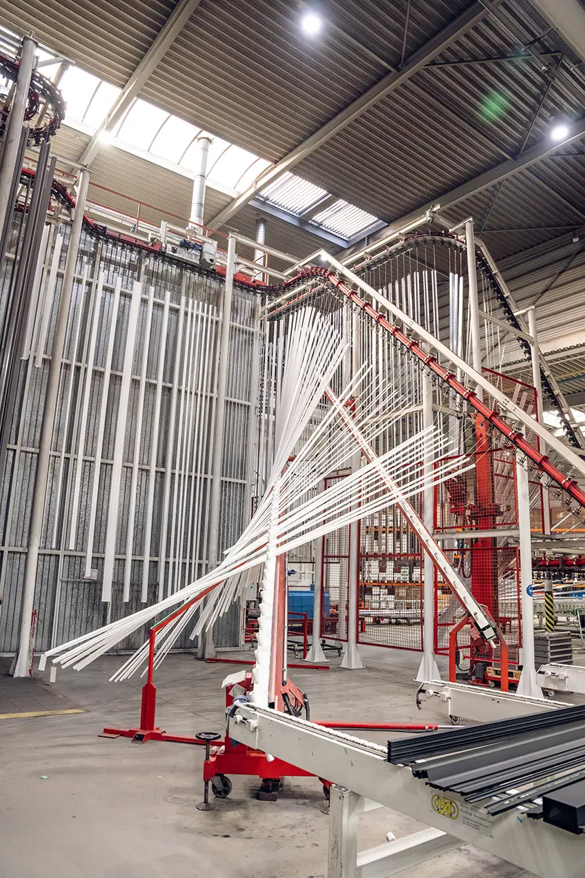 het poederlakken van aluminium profielen. Dankzij onze volledige interne